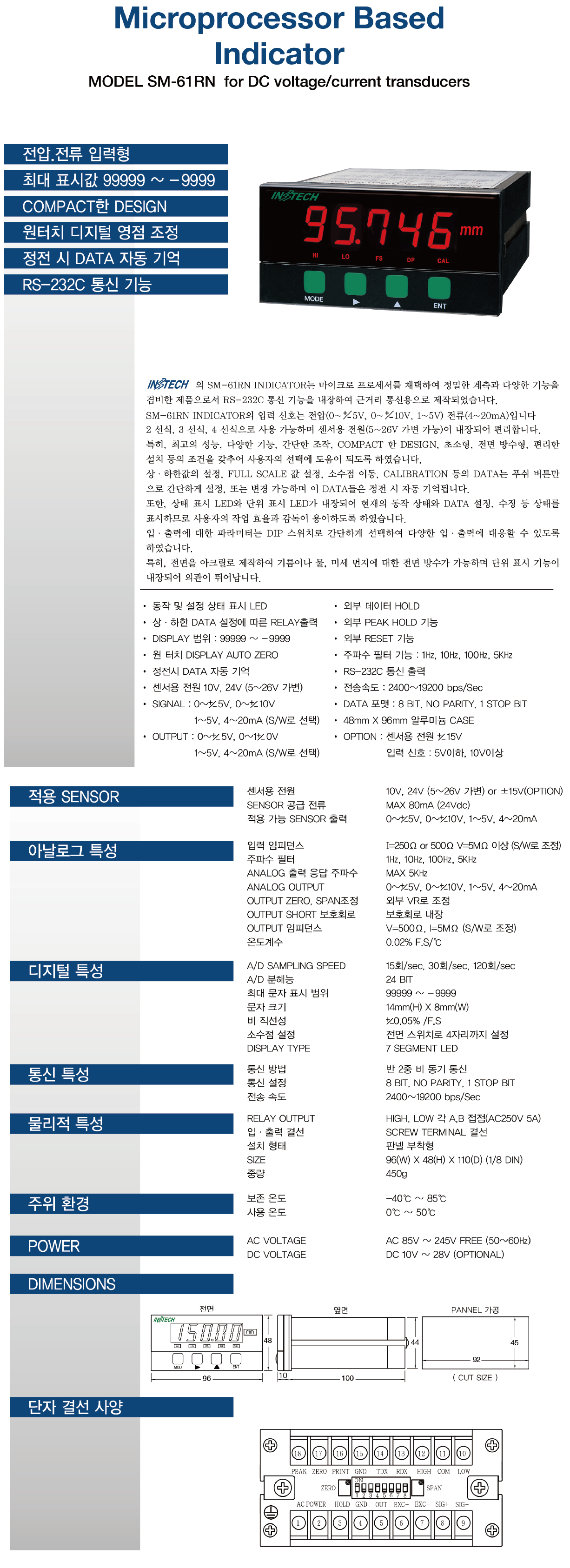 INSTECH SM-61RN DC전압 전류 입력 판넬METER > 판넬메타