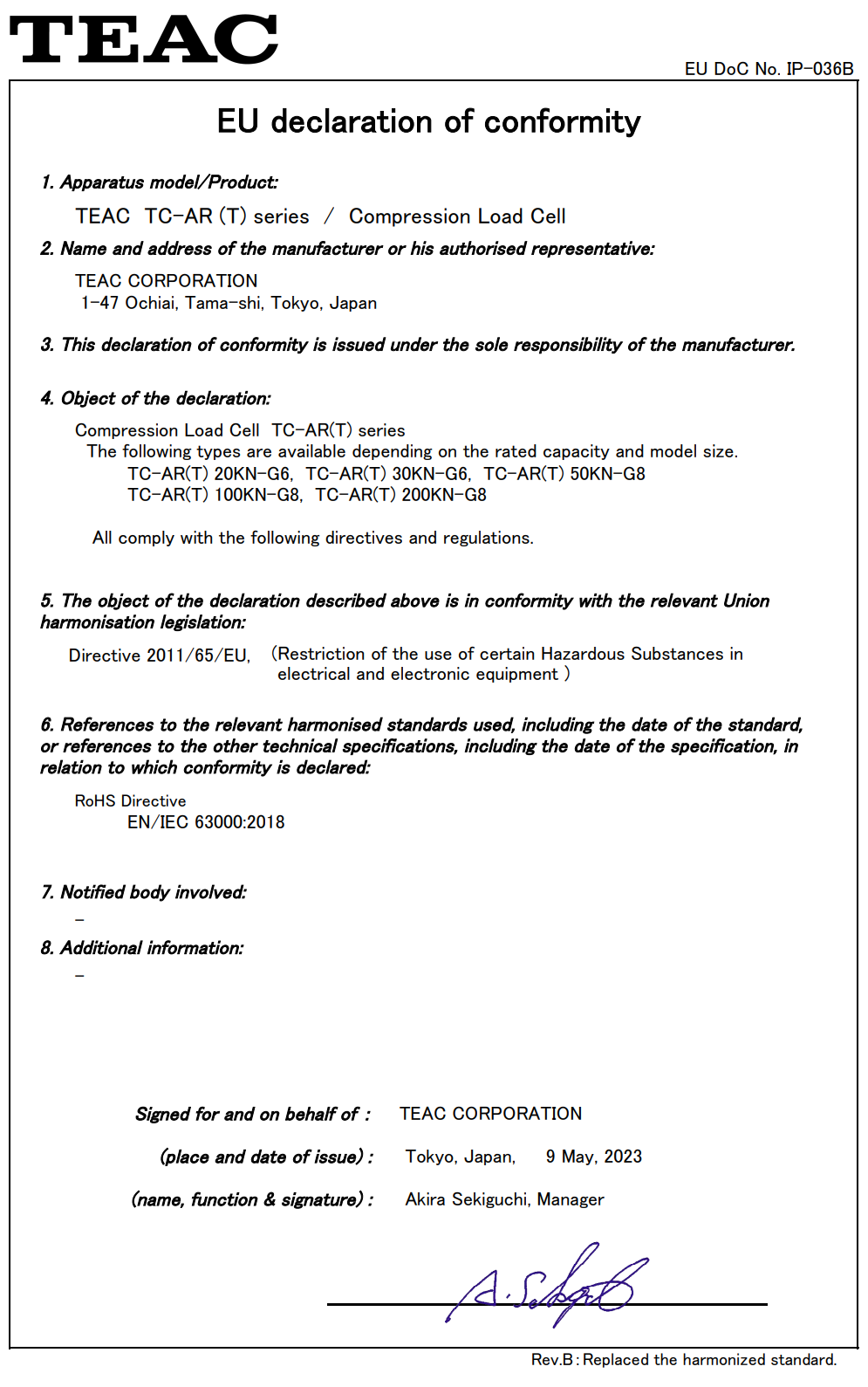 이전 모델 TC-AR : 기본 사양은 기존 제품 그대로 TEDS 기능의 추가와 친환경 (RoHS)을 준수했습니다.