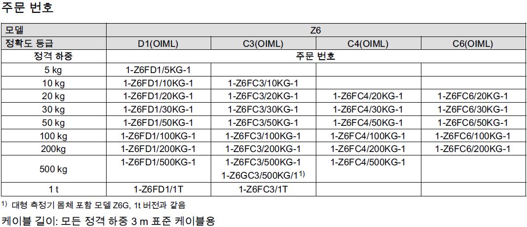 모델 1-Z6FC3/20KG-1 1-Z6FC3/50KG-1 1-Z6FC3/100KG-1 1-Z6FC3/200KG-1 1-Z6FC3/500KG-1