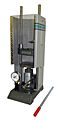 (MODEL C) 12 톤, 수동, 2 열 유압 실험실 프레스. Mini C와 비슷하지만 일광이 최대 18 인치까지 개방되고 더 무거워 진 구조로되어 있습니다. 읽기 쉬운 듀얼 스케일 아날로그 게이지, 파운드 힘과 미터 톤 단위 판독 (아날로그 게이지로 표시된 그림)