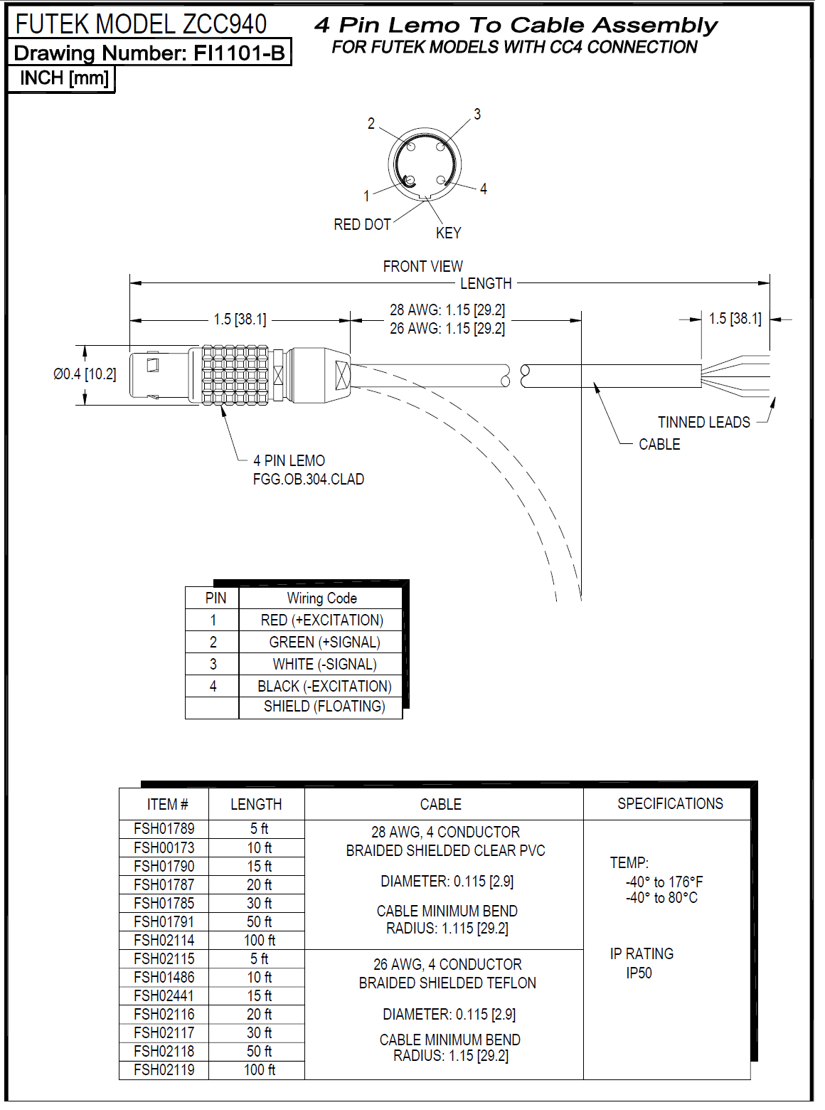 추천콘넥터 : ZCC940-FSH01790-15ft(5M) Long, 4 pin Lemo