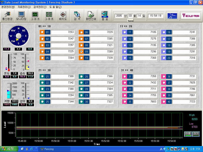 펜싱경기장 지붕막구조물 자동계측시스템 로드셀 설치사진
