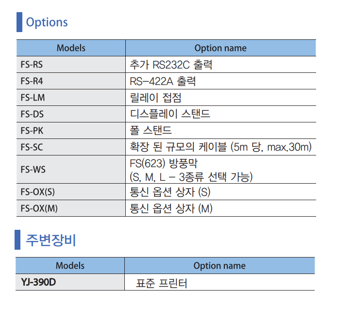 출력 : RS232C(Dsub 9Pin)+프린터 출력(Din 8Pin)