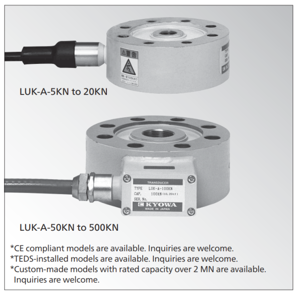 직경: 77mm(±5kN ~ ±10kN), 107mm(±20kN), 127mm(±50kN), 157mm(±100kN), 227mm (±200kN), 307mm(±500kN), 375mm(±1MN), 560mm(±2MN)