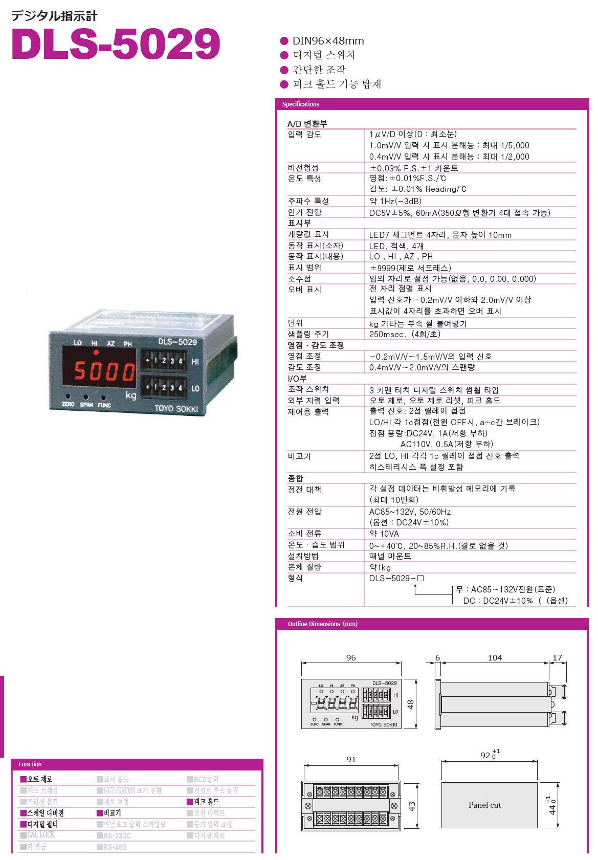 TOYO SOKKI DLS-5029 투입계량용 인디케이터 요약정보 및 구매
