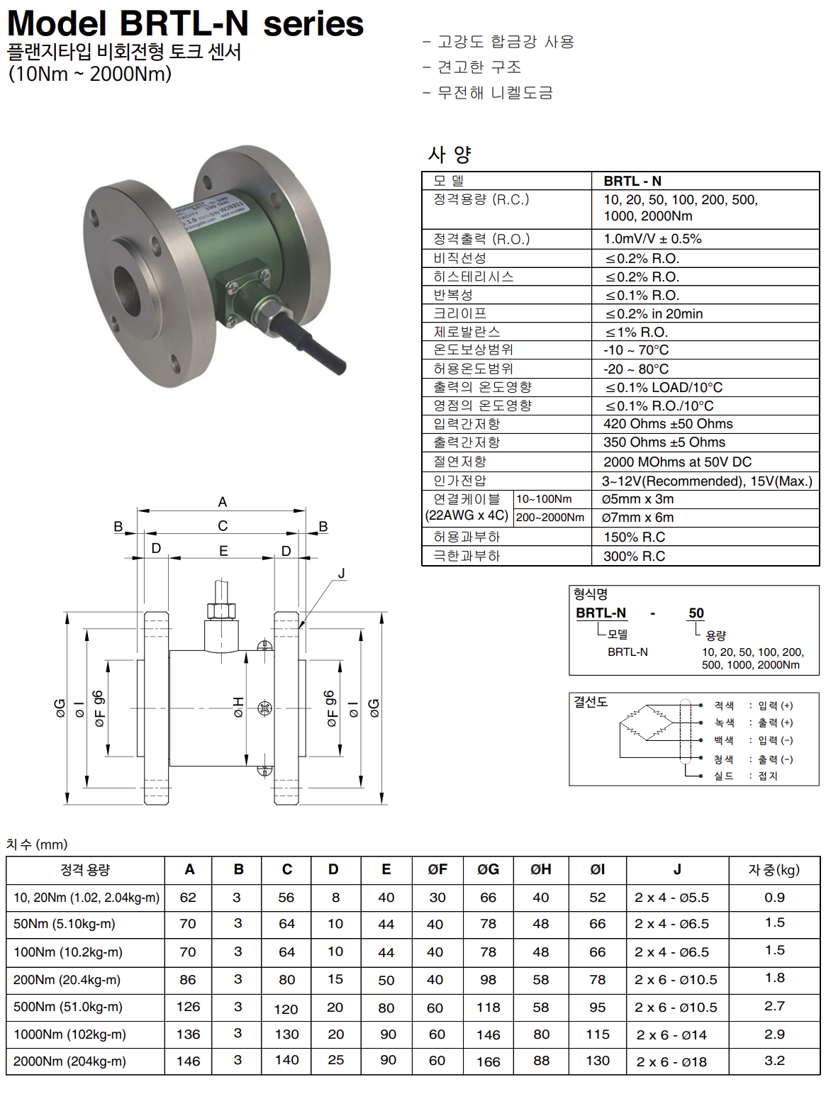 BRTL-N 비회전식 Flange Type 토크센서 요약정보 및 구매