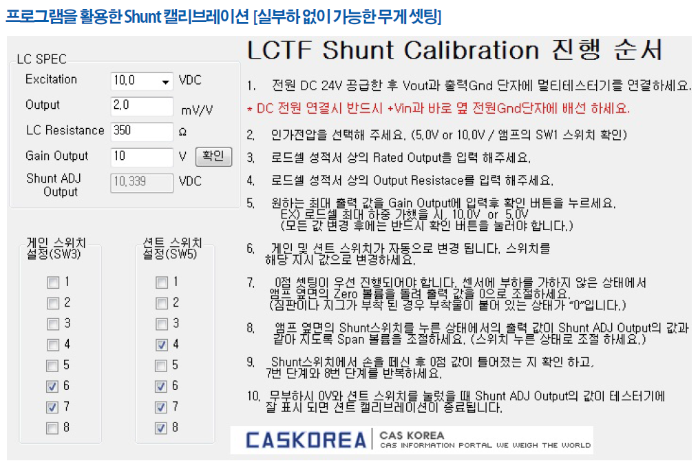 실부하 없이도 간편하게 Calibration 가능한 션트 기능 탑재(정확한 Calibration은 아님)