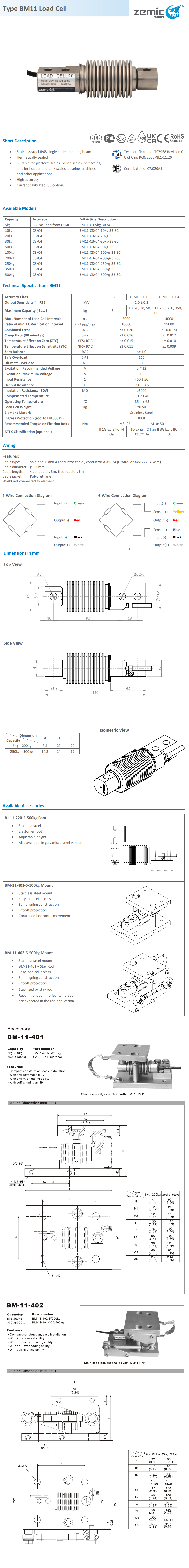 ZEMIC BM11 스테인리스 스틸 벤딩 빔 로드셀, OIML 승인(5kg-500kg) > 로드셀