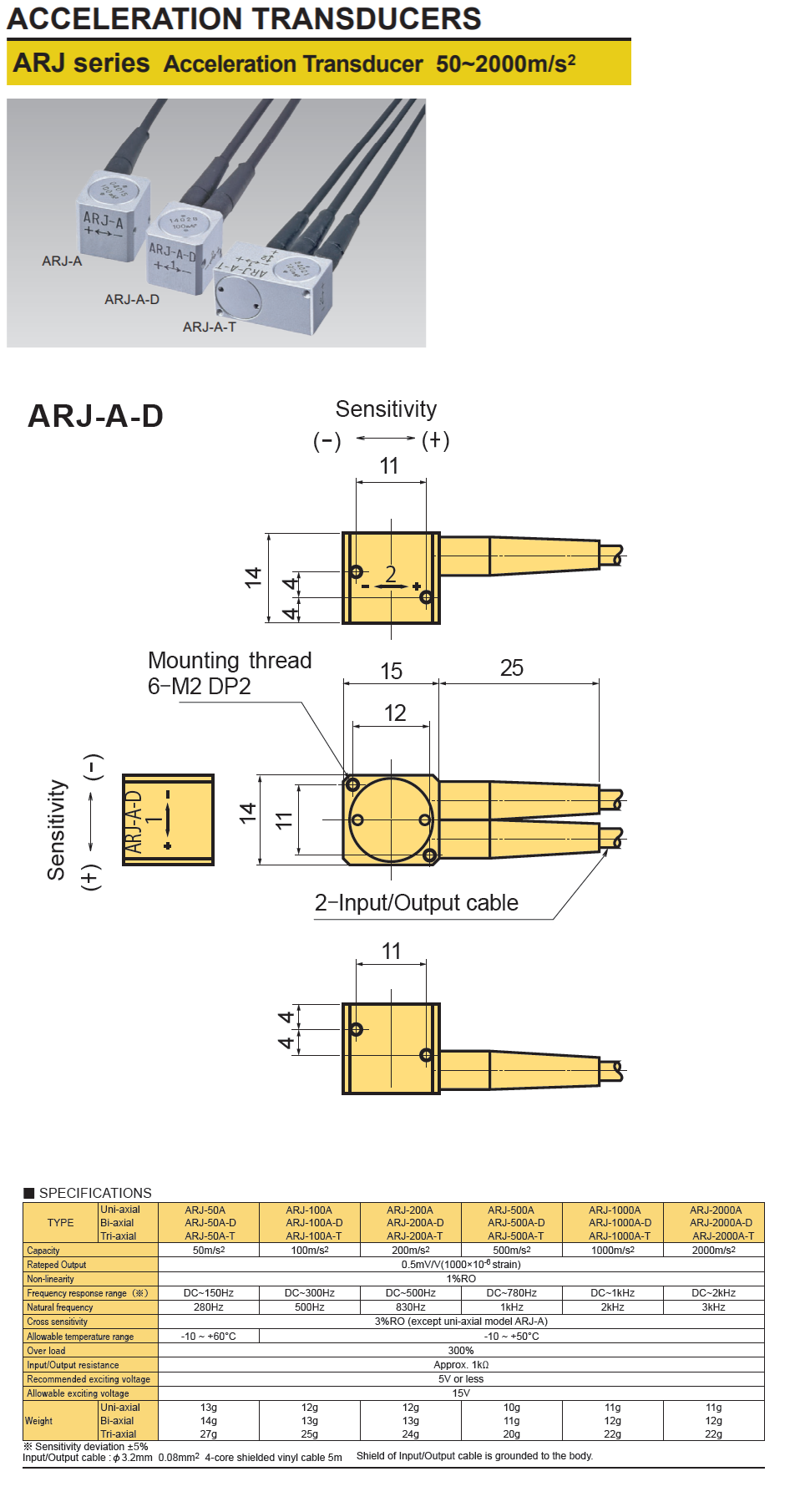 | ARJ-50A-D | 50m/s 2 | 약 0.5mV/V (1000x10 -6 변형) | 1%RO | -10 ~ +60℃ |