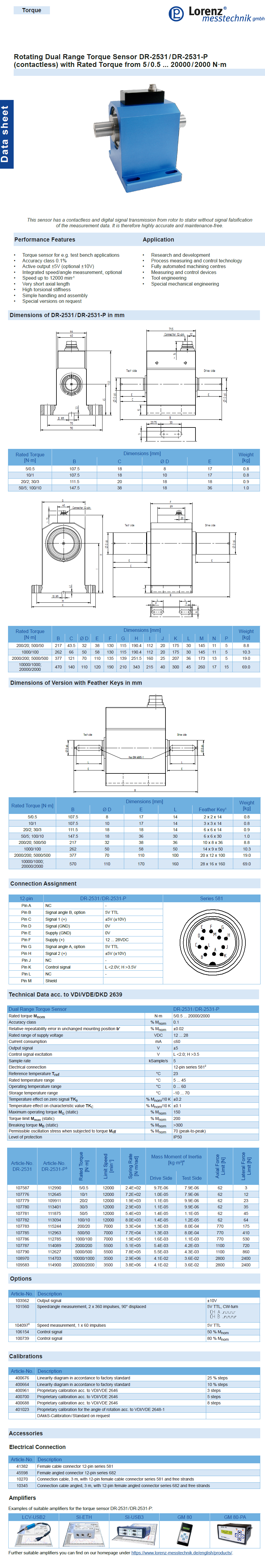 Lorenz DR-2531 / DR-2531-P ±5V / Dual 출력 비접촉식 토크센서
