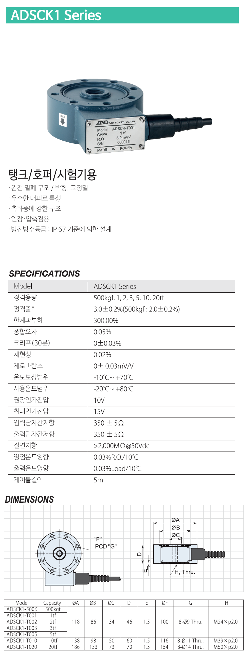 | 박형 구조로 낮은 높이의 설계가 가능한 중/고용량 로드셀 | |