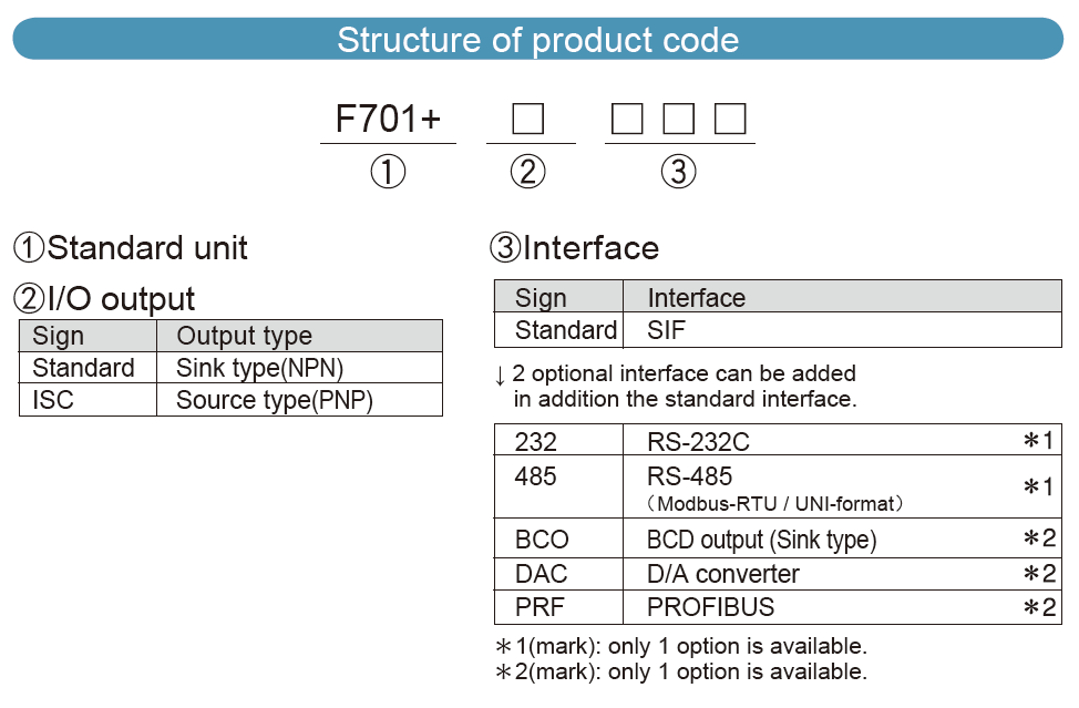 | 인터페이스 2 옵션 인터페이스는 표준 인터페이스에 추가할 수 있습니다. *1(마크): 1가지 옵션만 가능합니다. *2(마크): 1가지 옵션만 가능합니다. | |