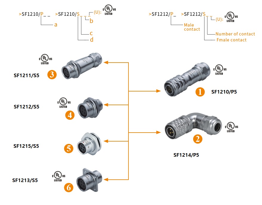 01、케이블 커넥터(>SF1210/P_ _ >SF1210/S_ _ _) | a、Male contact |