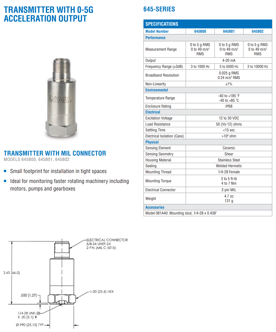 PCB 645B02 | 4-20mA 출력 진동센서(장납기제품)