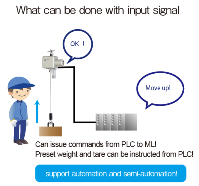 [상향 명령] 및 [Preset weight or tare]는 외부 입력으로, [ML 상태 알림] 및 [이상 알림]은 외부 출력으로 사용할 수 있습니다.
